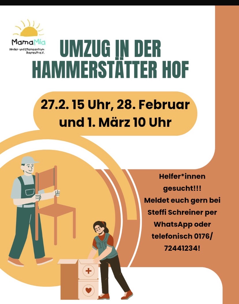 „Der Hammerstätter Hof von 1926, Sitz des Quartiersmanagements, wird von außen gerade frisch saniert. Und auch drinnen weht ab Januar ein frischer Wind, für den der neue Kooperationspartner Mama Mia sorgen wird“, so Oberbürgermeister Thomas Ebersberger. Die Immobilie, derzeit unregelmäßig geöffneter Nachbarschaftstreff mit Angeboten wie Stadtteilgymnastik, Singen und Musizieren, wird dann vom Mama Mia nicht nur sprichwörtlich bespielt. Durch den neuen Kooperationspartner werde in das bestehende städtische Quartiersmanagement ein Programm für Familien, für ganz Junge aber auch für Ältere aus dem Stadtteil Hammerstatt und darüber hinaus integriert, so Ebersberger. Ein Familiencafé, ein Handarbeitstreff, ein English Book Club und vieles mehr wartet dann auf die Besucherinnen und Besucher.